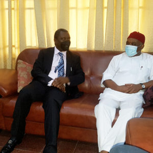 The Vice – Chancellor of Nnamdi Azikiwe University (NAU) ,Awka Prof. Charles Okechukwu Esimone on Thursday afternoon received in the Southeastern Ivory Tower the Chief Whip of the Senate and former Governor of Abia State, Senator Orji Uzor Kalu.