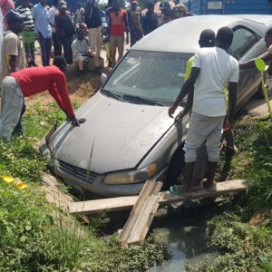 In his attempt to reverse the car the teenager who was obviously a learner initially crashed the bonnet to road pavement afterwhich he drove the vehicle straight into a deep drainage.