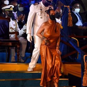 Singer, Rihanna, who was born on the Island was also honoured as a National Hero as she attends the presidential inauguration at Heroes Square, Bridgetown.