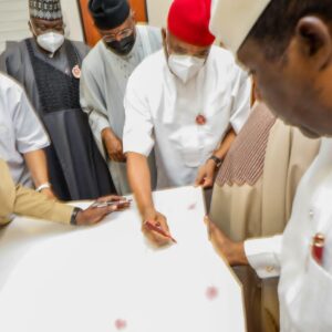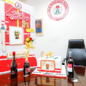 On arrival at Senator Kalu’s office, Senator Yahaya was greeted with the birthday cake inscribed with his name, followed by a birthday song rendered by the Senate President and others present.