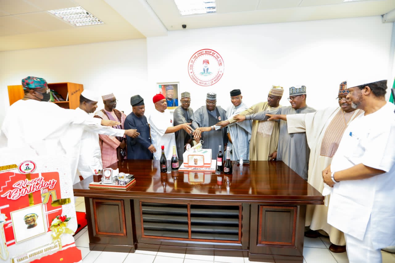 The Chief Whip of the Senate , Senator Orji Uzor Kalu on Tuesday threw a surprise reception to celebrate the Birthday anniversary of the leader of the Senate, Senator Abdullahi Yahaya who turned 71 last week Friday.