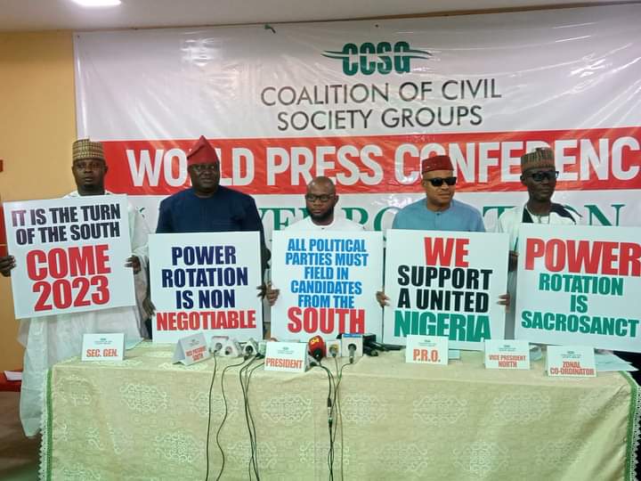 AHEAD of 2023 general elections with heightened political permutations and strategies, Civil Society Organisations under the auspices of Coalition of Civil Society Groups, CCGS, Friday, resolved to support southern presidency.