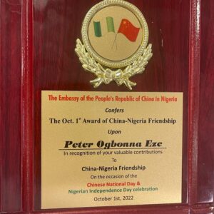 Special Assistant to Senator Orji Uzor Kalu, Chief Whip of the Senate and former Governor of Abia State, Peter Ogbonna Eze has won the 2022 China -Nigeria Friendship Award.