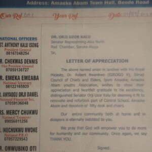 Abia North: Amaeke Abam Applaud Orji Kalu Over Quality School Project