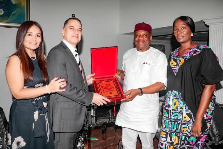 The special visit took place at the Presidential Villa, abode of the former Governor of Abia State, this evening at exactly 7:00 pm Nigerian time. The ambassador who came in with his beautiful wife, highly elated, was warmly welcomed by the international business mogul, Kalu, who showed them around his well curated palace with serene ambience that speaks class.